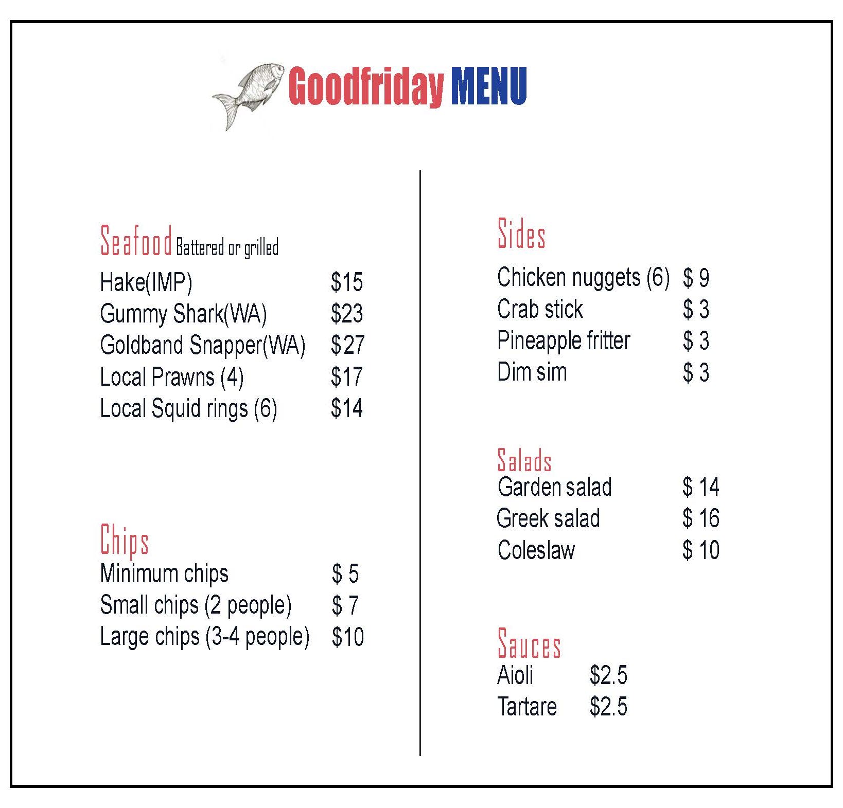 - Fresh Local Fish Every Day